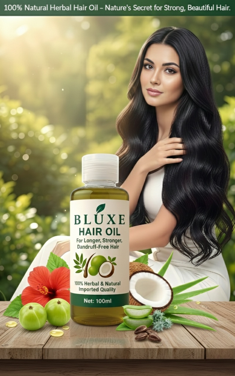 Product BLUXE hair oil for Hair Growth & Shine – 100% Natural Formula for Men & Women – Stops Hair Fall, Promotes Thick & Long Hair – 100ml, hair food oil, Hair growth oil, Herbal hair oil, Hair fall control, rosemary oil for hair growth